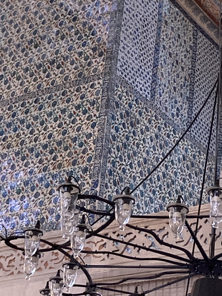 色数少なめ、ちょっと暗くてランプの灯りが映えるアヤソフィアって落ち着くわぁ😊ブルーモスクは柄がうるさかった
